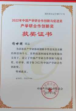 中国产学研合作创新与促进奖设立于2009年,是经科技部和国家科技奖励办批准设立,在产学研合作方面的第一个全国性奖项。2022年度共产生836个获奖单位和个人,其中:产学研合作突出贡献奖10位;产学研合作创新奖273个;产学研合作促进奖119个;产学研工匠精神奖37位;产学研合作创新成果奖397项。